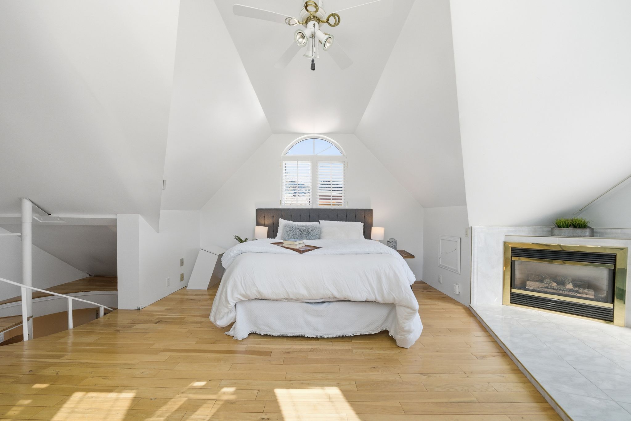 Then upstairs the primary suite stops you in your tracks. Vaulted ceilings, a gas fireplace, a private hot tub, and a luxurious 5-piece ensuite. It lives like a private retreat.